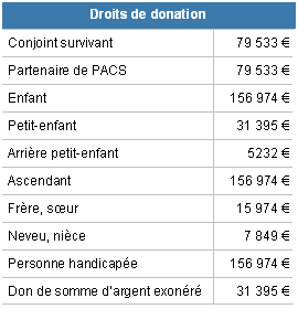 > Droits de donation